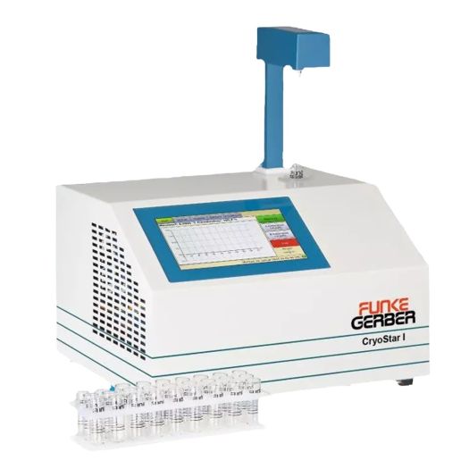 The Funke Gerber Cryostar 1 (Multi-Sample Measuring Head) is a high-precision freezing point analyser designed for accurate detection of milk purity and liquid quality using the DIN/ISO/IDF 5764 reference method. With ultra-fine resolution of 0.0001 °C, repeatability of ±0.002 °C, and a measuring range down to –1.5000 °C, it ensures reliable and traceable analytical results.